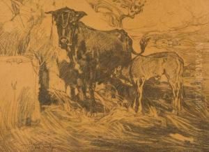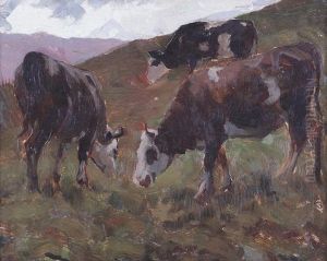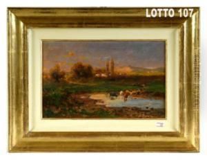 Mucche Al Pascolo Oil Painting by Filippo Carcano