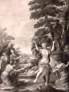 Nymphs In A Landscape Bathing, Dancing And Playing Music With A Satyr