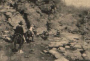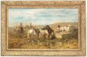 River Landscape With A Drover And Pack Animals Passing Houses