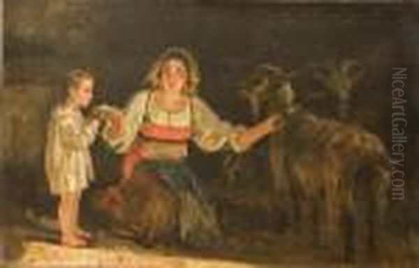 Interno Di Stalla Oil Painting by Filippo Palizzi