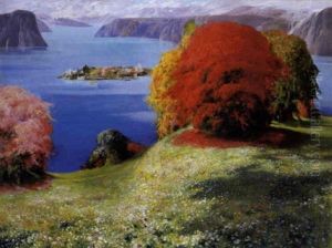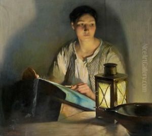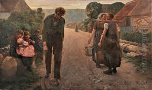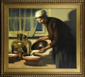 Laundry Drying By A River With Figures Harvesting Beyond, In A Sunlit Pastoral Landscape