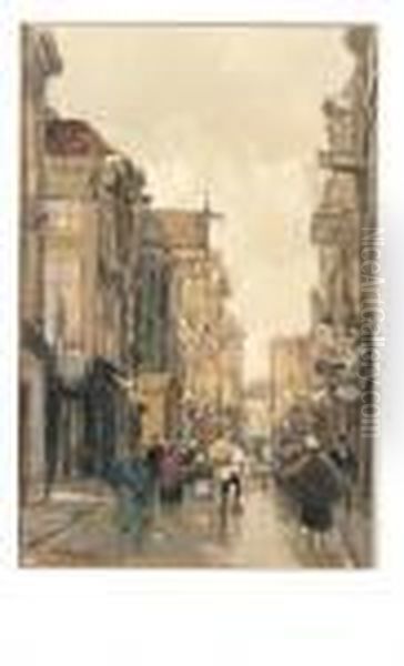 A View Of The Spuistraat, The Hague Oil Painting by Floris Arntzenius