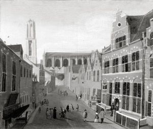 De Dom te Utrecht, gezien vanuit de Korte Nieuwstraat