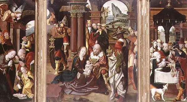 Triptych:The Adoration of the Magi (central panel), The Nativity (LH panel), The Presentation in the Temple (RH panel)