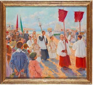 Arcadi Mas i Fondevila was a Catalan painter born in Barcelona, Spain, on January 15, 1852. He is known for his genre scenes, landscapes, and portraits that reflect the realist style, which was prevalent during his time. Mas i Fondevila received his artistic training at the Escola de la Llotja in Barcelona, where he studied under masters such as Ramon Martí Alsina and Claudi Lorenzale.
