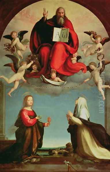 Bring the timeless beauty of Fra Bartolommeo della Porta's God appearing to St. Mary Magdalen and St. Catherine of Siena c.1508 into your home with a handmade oil painting reproduction. Carefully recreated on canvas by skilled artists using traditional techniques, this piece captures the delicate brushwork, subtle light, and vibrant color of the original masterpiece. With museum-level quality and rich texture, it brings elegance and artistic depth to any space. Enjoy free shipping and make this masterpiece a part of your personal collection.