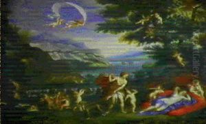 Paesaggio Con Venere, Amorini Che Forgiano Le Frecce, Altri Amorini Che Tirano Con L'arco, E Nel Cielo Altre Divinita