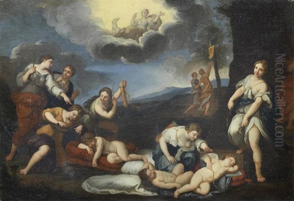 Diana's Nymphs Disarming Sleeping Cupids Oil Painting - Francesco Albani