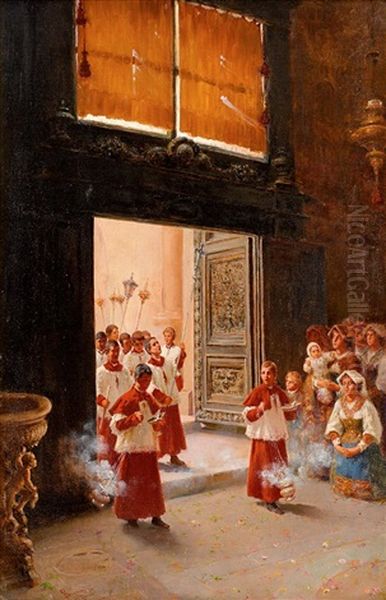 Bring the timeless beauty of Francesco Bergamini's The Procession into your home with a handmade oil painting reproduction. Carefully recreated on canvas by skilled artists using traditional techniques, this piece captures the delicate brushwork, subtle light, and vibrant color of the original masterpiece. With museum-level quality and rich texture, it brings elegance and artistic depth to any space. Enjoy free shipping and make this masterpiece a part of your personal collection.