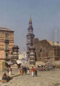 Strasenszene In Neapel Mit Blick Auf Die Kirche Santa Croce E Purgatorio Al Mercato