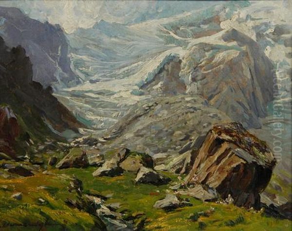 "monte Rosa Dall'alpe Pedriola" 1929 Olio Su Cartone Telato Firmato In Basso A Sinistra. In Cornice