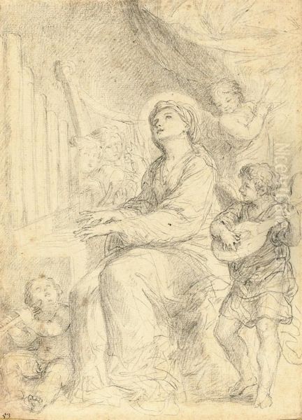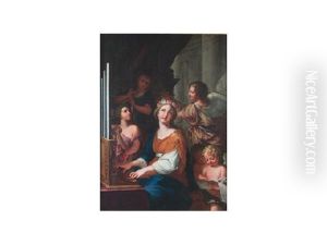 Saint Cecilia Playing The Organ Accompanied By Putti