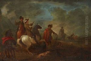 Reitergruppe Bei Der Rast