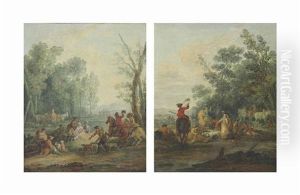 A Young Cowherd Playing A Pipe; A Husband And Wife Herding Sheep And A Cow (pair)