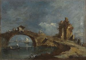 View of a Village with a Bridge and a Ruined Monumental Gothic Door