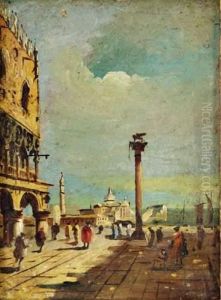 A Capriccio Of The Venetian Lagoon With An Obelisk, A Fortified Island, And Fishermen In The Foreground