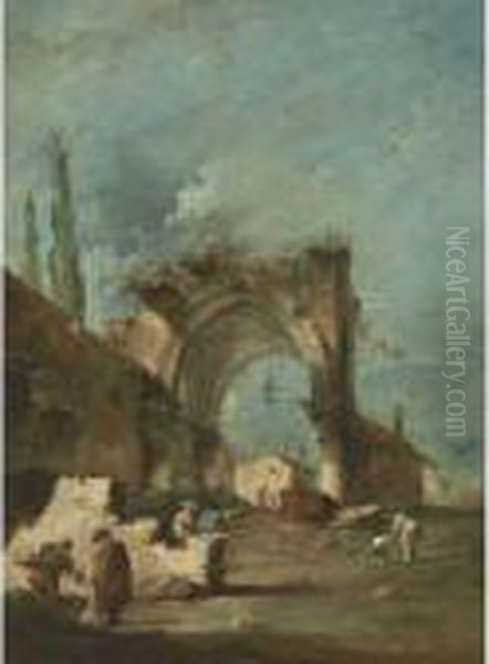 A Capriccio Of Buildings With Figures By A Ruined Arch