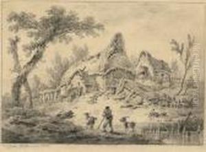 Goatherds By A Cottage; And Shepherds By A Stone Barn (pair)
