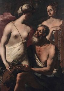 Francesco Maffei was an Italian painter of the Baroque period, active mainly in the Veneto region, especially in Vicenza. He was born in Vicenza in 1605. Maffei is known for his dynamic and expressive style, which was influenced by the works of the Venetian masters like Paolo Veronese. He was also influenced by the dramatic use of light and shadow found in the works of Caravaggio and the Bolognese school led by the Carracci family.