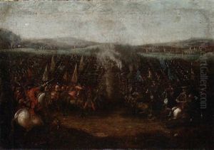 An Italianate Landscape With Infantry And Cavalry By A Camp