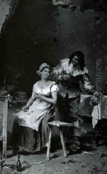 Tavern Interior With Cavalier And Maiden Oil Painting by Francesco Peluso