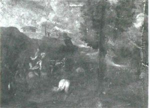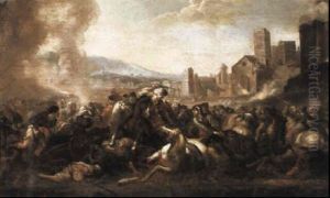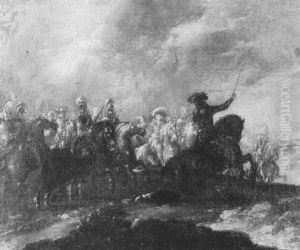 Battle Scene With Calvalry Before A Castle, A Bivouac In Thedistance