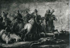 A Cavalry Engagement With A Hilltop Chruch Beyond