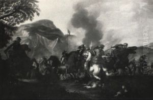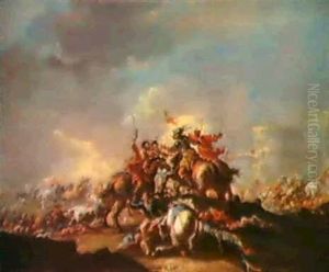 Battle Scene With Calvary Before A Castle, A Bivouac In The Distance