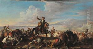 A Cavalry Battle Between Christians And Turks (+ A Cavalry Battle Between Christians And Turks, A Fortress Beyond; Pair)