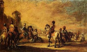 Soldiers On Horseback Passing Through A Military Encampment