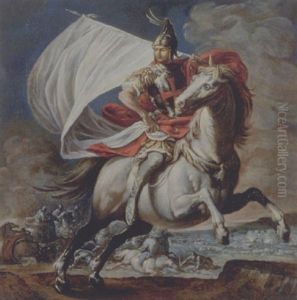Ritratto Di Condottiero A Cavallo, Con Corazza E Mantello Rosso, Ed Un Cavaliere Al Suo Fianco