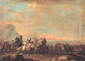 A Cavalry Engagement With A Hilltop Chruch Beyond
