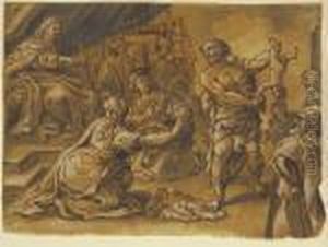 Portrait Of A Nobleman, Three-quarter Length, Leaning His Glovedright Hand On A Console Table