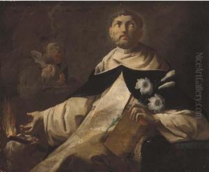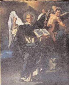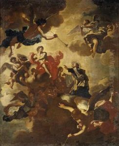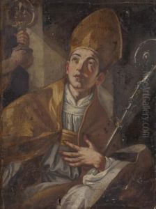 Saint Francis Xavier On Clouds Holding A Lily And A Book Withputti