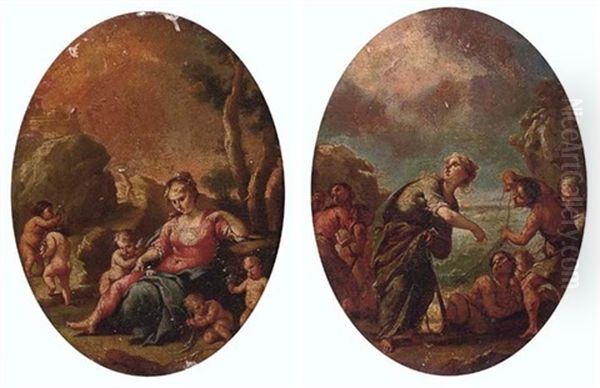 A Goddess Surrounded By Putti (+ A Goddess With Fisherman; Pair)
