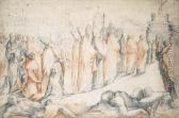 Saint Gregory The Great Staying The Plague In A Procession Leadingto The Castel Sant'angelo