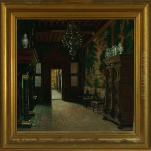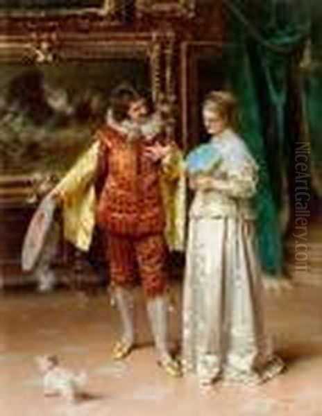 Noble Couple With Dog In A Picture Gallery
