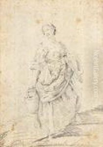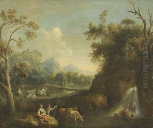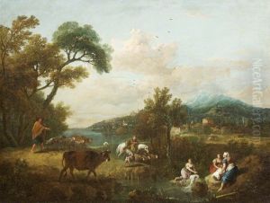 A Pastoral Landscape With Peasants Gathering Water, A Shepherd Andhis Flock