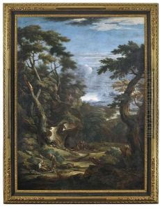 Felsige Baumlandschaft Mit Rastenden Hirten Und Vieh.