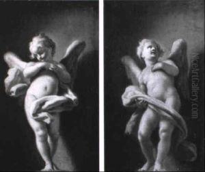 The Infant Christ Child And The Infant Saint John The Baptist, In A Draped Interior, A Landscape Beyond