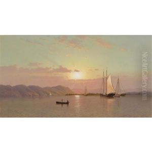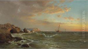 Point Judith, Rhode Island Shoreline Scene With A View Of Sailboats And Steamers At Sunset