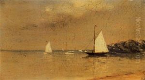 Three Gaff Rigged Sloops In A Bay