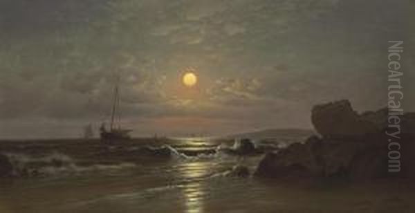 Moonrise On The New England Coast Oil Painting - Francis Augustus Silva