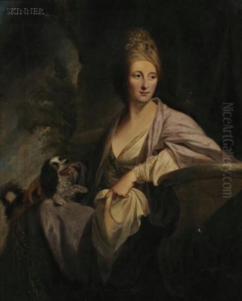 Portrait Of A Woman With An English Toy Spaniel