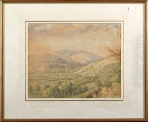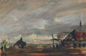 Cattle And A Herder By A River, With Ruins Beyond