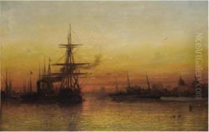 Evening On The Thames, A View Of Greenwich Hospital