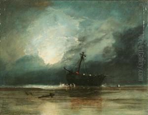 Moon Rising Above A Beached Vessel