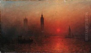 Scene At Dusk Of The Thames With A View Of The Palace Ofwestminster