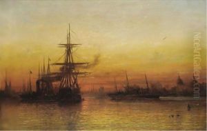Sunrise - Sailing Ships And Paddle Tugs In The Harbour At Northshields