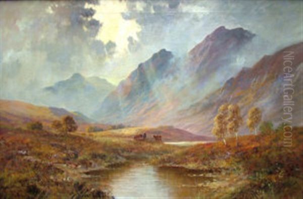 Cattle Watering In A Highland Lock Scene